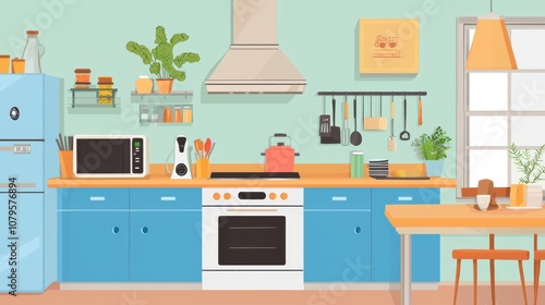 kitchen, modern, decor, design, home, interior, cooking, appliance, stove, refrigerator, microwave, countertop, plant, utensil, table, chair, warm, inviting, fresh, organisation, storage, arrangement, colours, clean, bright, furniture, style, contemporary, cook, culinary, healthy, lifestyle, space, functionality, homelike, relaxing, creative, environment, atmosphere, layout, simplicity, elegance, aesthetic, warmth, charme, vibe