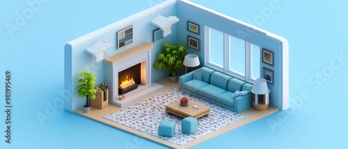 living room, fireplace, cosy, modern, interior design, furniture, blue, carpet, plant, art, decor, lamp, sofa, coffee table, cushion, wall, warmth, relaxation, light, space, comfort, home, style, architecture, ambience, beauty, home decor, wooden floor, minimalist, arrangement, calmness, inviting, homelike, serene, atmosphere, artwork, contemporary, aesthetic, chill, layout, open space, freshness, homely, simplicity, design