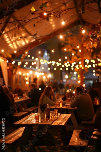 oktoberfest, beer, tent, cosy, seating, festive, lighting, autumn, celebration, decoration, rustic, ambience, intimacy, gathering, warm, traditional, festival, german, cultural, drink, socialising, warmth, evening, social, venue, party, cheerful, illuminated, night, holiday, lively, candle, table, atmosphere, lantern, relaxation, joyous, vibrant, event, seasonal, enjoyment