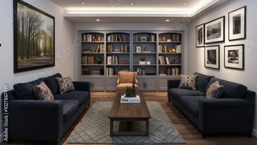 Cozy Reading Room with Bookshelves and Modern Furniture