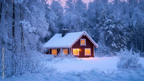 cabin, snow, winter, forest, cosy, evening, warm, light, tree, nature, holiday, calm, scenic, rustic, architecture, tranquil, landscape, cold, serene, night, beauty, peaceful, isolated, wooden, snowflake, sky, frost, wintery, illumination, escape, charme, environment, photo, wilderness, white, comfort, scenery, remote, seasonal, view, peacefulness