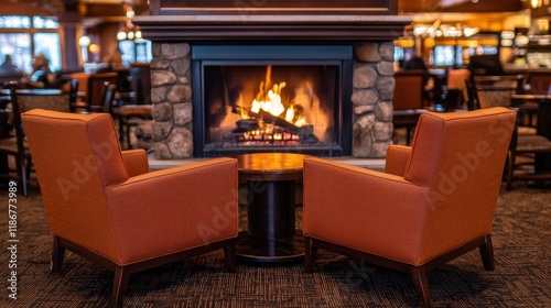 Cozy Seating Area with Warm Fireplace in Inviting Lounge Setting
