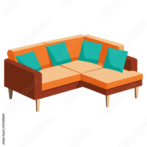 Cozy Sectional Sofa Vector Illustration - Cartoon, Clipart, and Line Art Design, Cozy sectional sofa vector illustration in cartoon, clipart, and line art styles for digital use.