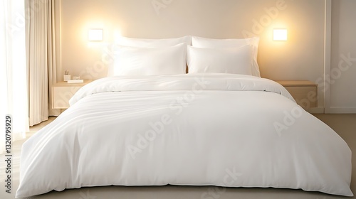 Cozy white bedding in a serene bedroom setting with soft lighting.