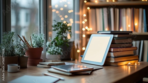 workspace, winter, academic, book, tablet, study, note, pastel, stationery, organised, productivity, sharpened, learning, calm, atmosphere, minimalist, style, glowing, soft, diffused, light, concept, school, space, efficient, cosy, neat, arrangement, indoor, desk, research, inspiring, creativity, educational, modern, trend, home, serene, peaceful, neatness, elegant, tasteful, subdued, artistic