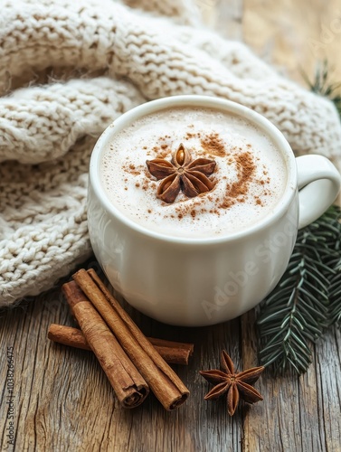 cosy, winter, setup, knitted, foulard, hot, drink, cinnamon, mug, spice, warm, comfort, beverage, aromatic, relaxing, festive, cinnamon stick, wood, home, vibrant, natural, ingredient, season, indoor, aesthetic, calming, peaceful, inviting, traditional, soft, texture, culinary, atmosphere, nature, herbal, star anise, milk, brewed, flavorful, preparation, seasonal, stylish, tabletop, decoration, enjoying