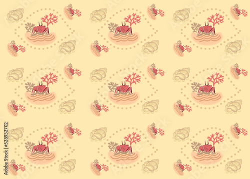 Crab coral seamless pattern