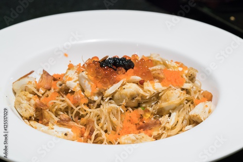 crab, pasta, spaghetti, cream, dish, vegetarian, italian, photo, mixture, meal, table, pepper, nobody, plate, onion, white, western, spring, bowl, italy, horizontal, seafood, shrimp, epicure, salad, closeup, vegetable, beige, dinner, eat, linguine, tasty, healthy, sharpened, cheese, free, selective, cookery, herb, fresh, noodle, fish, fork, food, sauce, dressing, parsley, seafood