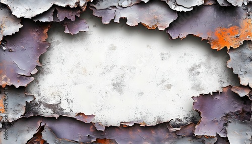 texture, paint, peeling, fractured, weathered, aged, grunge, rust, old, abstract, surface, damage, distressed, wall, decay, rough, material, background, worn, layer, erosion, pattern, detail, concrete, dirty, fragment, frame, border, edge, blank, space, white, grey, purple, orange, colours, design, art, vintage, industrial, structure, chipped, residue, natural, element, separation