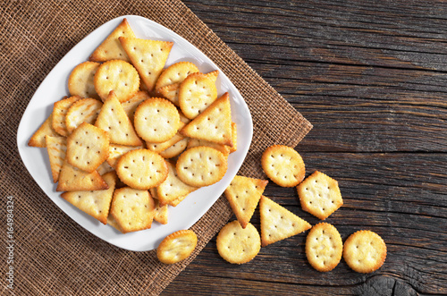 cracker, cheese, cookie, biscuit, food, baked, plate, background, breakfast, topview, wooden, table, crispy, delicious, dessert, favor, healthy, salty, snack, wheat, dark, yellow, napkin