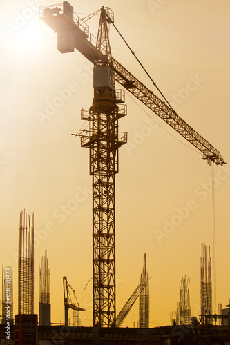 Crane in sunset at building site