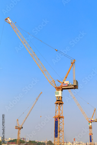 construction, crane, crane, site, sky, industrial, architecture, engineering, tower, project, industry, technology, structure, work, urban, steel, blue, building, large, business, machinery, yellow, frame, cement, city