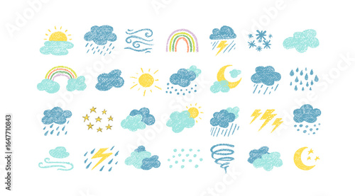 cloud, wax crayons, weather, sky, doodle, rain, sun, drawn, vector, icon, crayons, hand, chalk, children, texture, children, pastel, wind, storm, scribble, baby, lightning, winter, vignetting, brush, element, illustration, blue, cute, snow, rainbow, water, abstract, climate, background, summer, forecast, blackboard, watercolor, season, meteorology, rough, hurricane, dripped, set, charcoal, signs, thunderstorm, isolated