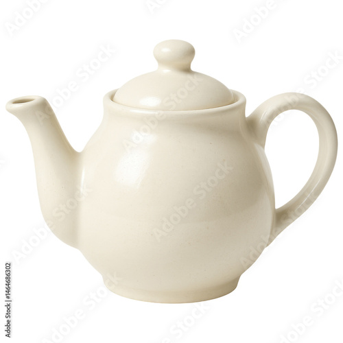 Cream colored ceramic teapot with lid perfect for tea time A classic kitchen utensil