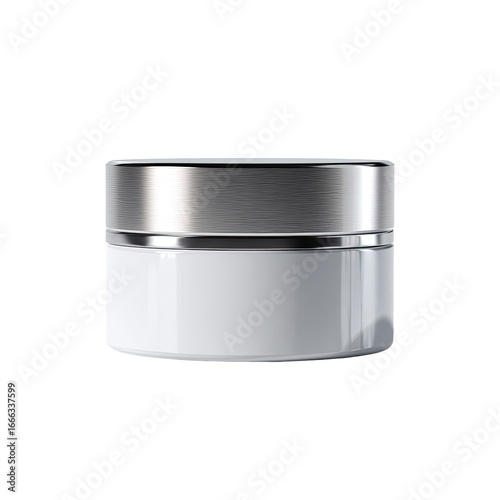 jar, cream, cosmetic, beauty, skincare, white, silver, metallic, container, product, cardboard box, design, modern, elegant, luxury, high-end, cosmetic, face, body, moisturiser, treatment, hydratation, illuminating, refreshing, soothing, smooth, glossy, round, top, lid, metal, cap, cylindrical, three-dimensional, illustration, isolated, blank, clean, simple, minimalist, portable, travel, premium, spa, health, care