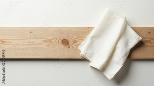 Cream-colored fabric draped elegantly atop a light wood plank, minimalist design concept
