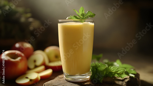 Creamy Apple Smoothie with Mint Garnish - Fresh Fruit Drink