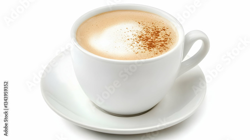 Creamy Cappuccino in White Cup on Saucer, isolated on white background, ideal for cafe menu