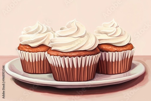 cupcake, cupcake, dessert, sweet, icing, frosting, cake, cake, plate, food, baking, baked, treat, delicious, bakery, sugar, cream, creamy, vanilla, holiday, celebration, party, birthday, event, homemade, fresh, epicure, tasty, deliciously, indulgence, temptation, sweet tooth, confectionery, pastry, illustration, drawing, art, digital artwork, studio shot, still life, food photography, closeup, horizontal, brown, white, pink, background, isolated
