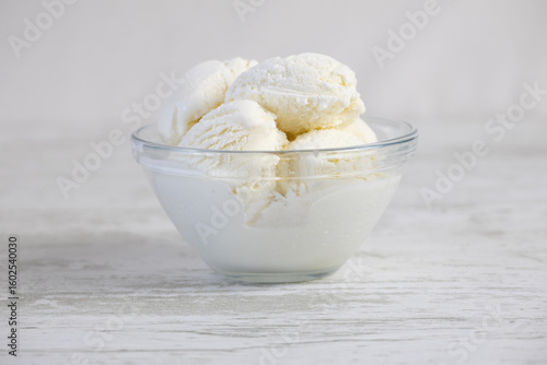 Creamy ice cream in a glass bowl