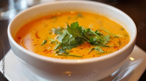 soup, food, dish, meal, cookery, culinary, cooking, receipe, delicious, tasty, deliciously, healthy, eating, dinner, lunch, breakfast, eatery, cafes, bowl, plate, orange, creamy, herb, garnish, spicey, hot, fresh, vegetable, ingredient, favor, aroma, appetising, tempting, vibrant, colourful, texture, steam, liquid, gastronomy, eat, epicure