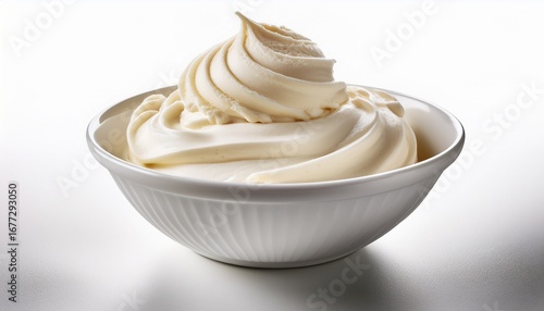 creamy soft serve ice cream in white bowl on white background