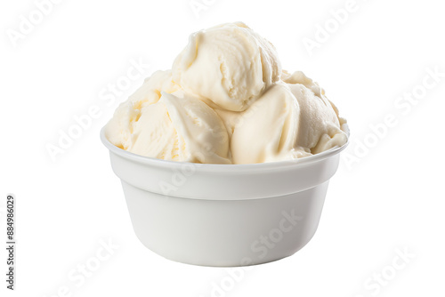 Creamy vanilla ice cream scoops in a bowl isolated on transparent background, ideal for food and dessert menus or advertising