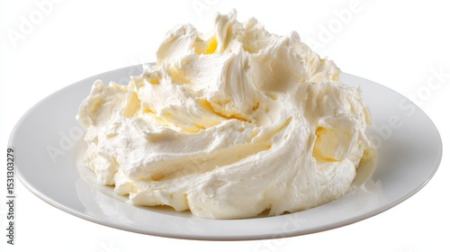 Creamy Whipped Cream Dessert on a White Plate Delicious and Fluffy Texture Perfect for Baking or Eating
