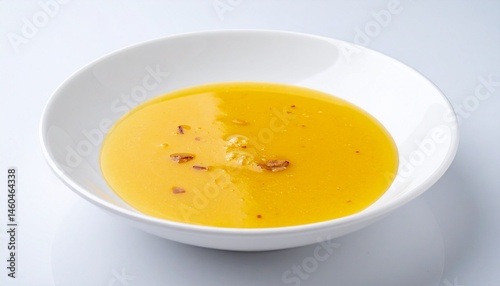 Creamy Yellow Soup in a White Bowl Garnish with Spices Delicious and appetizing food