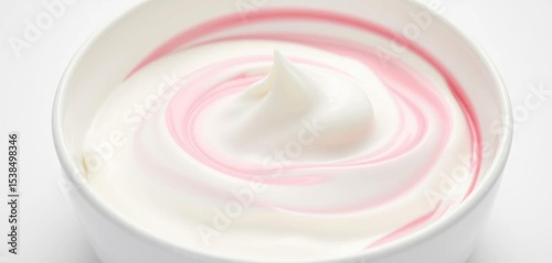 Creamy yogurt swirls in a bowl, pristine white background, healthy eating, milk