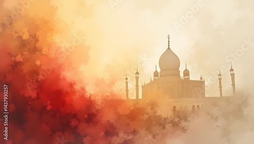 Create a captivating visual representation of the Islamic concept. This digital painting uses a color palette that seamlessly transitions from deep crystal to delicate white in warm, inviting tones.