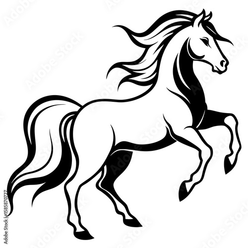 Create a Vector Silhouette of a Majestic Prancing Horse with Flowing Mane and Extended Legs