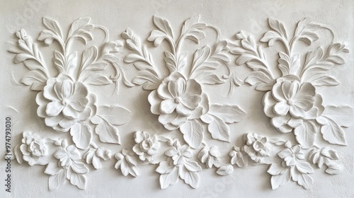 Create an image of a plaster background featuring a floral pattern, perfect for interior design and decorative elements.