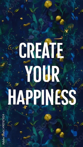Create Your Happiness colorful background and text (T-shirt Design Motivational Quote, Illustration ,Typography)