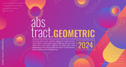 Creative and modern abstract background with gradient color and circles element. Purple, orange, yellow, and pink gradient background. Cool geometric background. Shapes element.