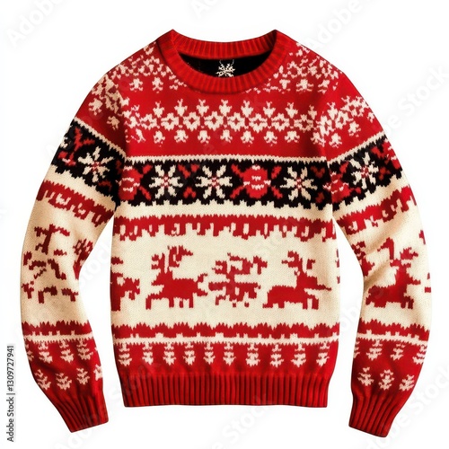 sweater, christmas, winter, jumper, ornament, wool, red, design, fashion, holiday, vector, snowflake, illustration, pattern, retro, traditional, norwegian, nordic, vintage, texture, scandinavian, fabric, knitwear, white, background, decorative, merry, seasonal, textile, ugly, clothes, pullover, knit up, party, warm, reindeer, green, border, tree, generative, ai, festive, isolated, garment, apparel, colourful, clothing, print