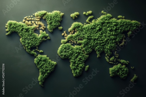 Creative graphic layout showcasing a world map made of greenery for global advertising themes