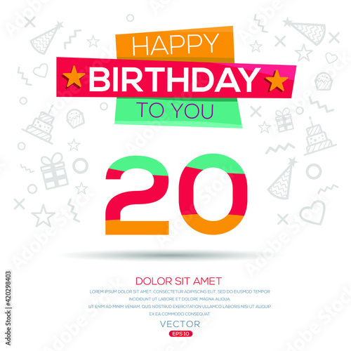 Creative Happy Birthday to you text (20 years) Colorful decorative banner design ,Vector illustration.