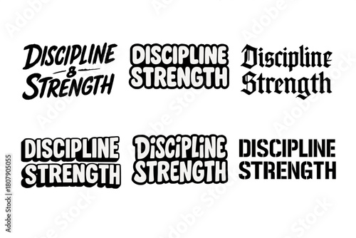 Creative Lettering Variations. Discipline and Strength. Set lettering. harmonious lettering variations of the same emblematic concept, each with different