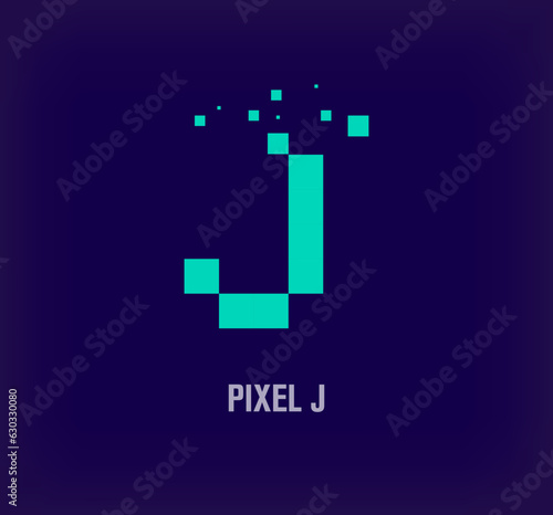 Creative pixel letter J logo. Unique digital pixel art and pixel explosion template. vector