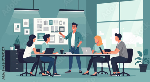 meeting, teamwork, office, discussion, presentation, workplace, team, business, corporate, collaboration, brainstorming, strategy, laptop, planning, project, employee, colleague, workspace, interior, working, cooperation, agenda, sharing, design, communication, information, analysis, solution, leadership, executive, professional, startup, management, training, seminar, conference, furniture, light, indoor