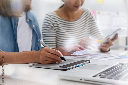 Creative Web Designer planning application and developing template layout, framework for mobile phone. User experience (UX) concept.