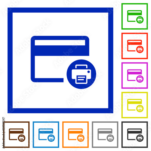 Credit card print record flat framed icons