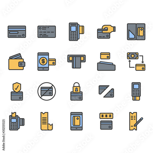 Credit card symbol icon set.