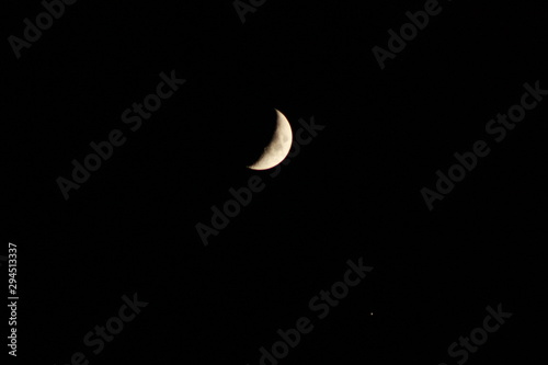 Crescent Moon in Night Sky with Jupiter