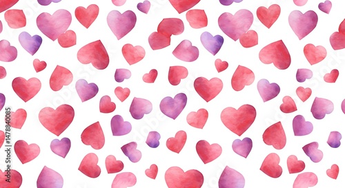 heart, pink, purple, red, watercolor, pattern, background, texture, design, romantic, love, valentine, art, illustration, graphic, wallpaper, card, wedding, celebration, heart-shaped, abstract, painted, colourful, soft, gentle, delicate, pretty, sweet, feminine, cute, adorable, scattered, overlay, digital, print, seamless