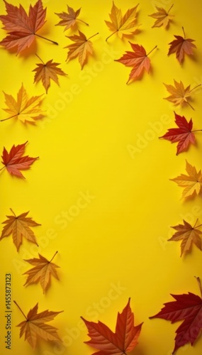 Crisp, brown leaves scattered on vibrant yellow backdrop, leaves, autumn