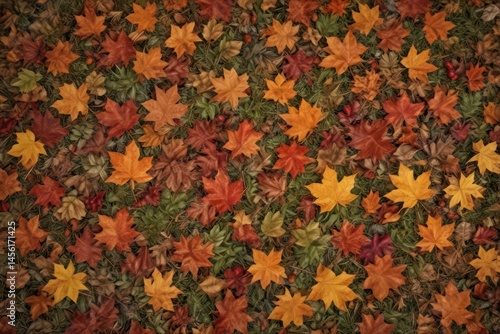 Crisp fallen leaves and twigs form a textured carpet on the forest floor , still, woodland scene, floor