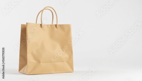 Crisp white background, single brown paper shopping bag , isolated, recyclable