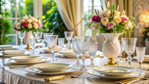 elegant, table, setup, decor, formal, dining, centrepiece, flower, arrangement, luxury, sophisticated, refined, stylish, wedding, occasion, china, silverware, linen, napkin, placemat, candle, lighting, service, manner, protocol, furnishing, artistry, sophistication, opulent, extravagant